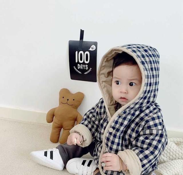 リバーシブルコート キッズ ジャケット 男の子 アウター フード付き ベビー服 キッズ ボア リバーシブル ジャケット 赤ちゃん アウター 両面コート ベビー用 子供服 秋 冬 チェック柄