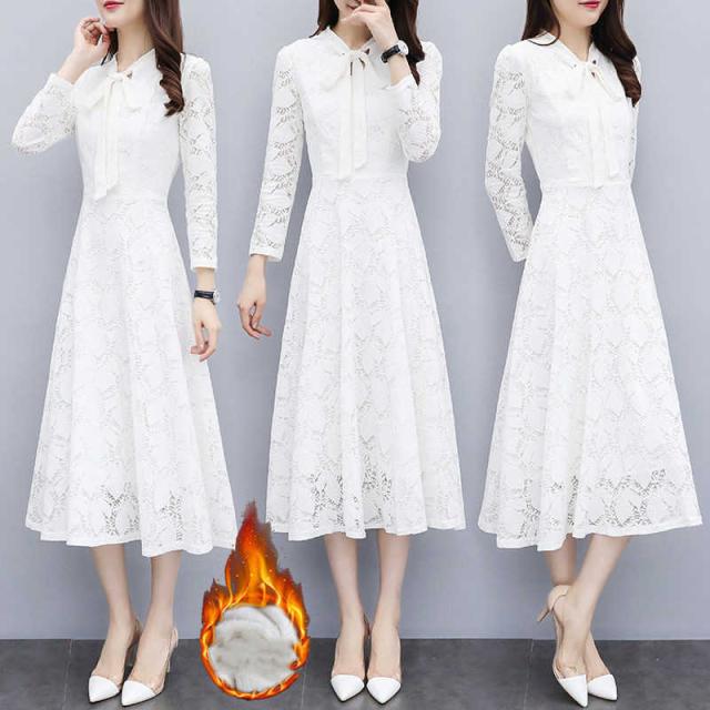 ロングドレス レースワンピース 秋冬 パーティードレス ワンピース マキシワンピ レディース 長袖 結婚式 二次会 お呼ばれ パーティー ラウンドネック 花柄 レース 20代 30代 40代 大きいサイズ 黒色 ブラック ホワイト ピンク ブルー 春 秋 冬 お呼ばれ