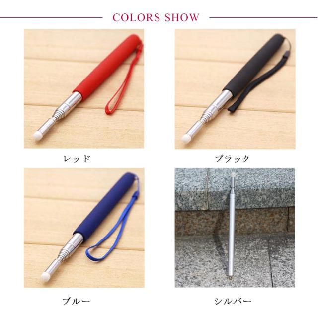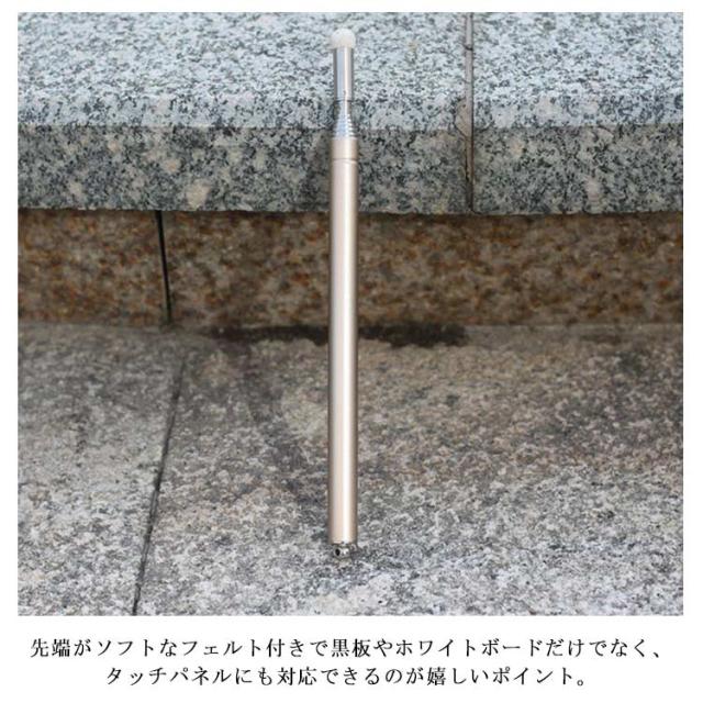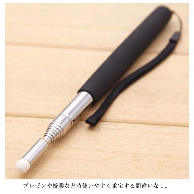 | 先端が柔らかいのでボードを傷つけない♪伸縮式指示棒。 コンパクトなので持ち運び便利。手首の通しストラップ付きでフックなどに掛けて収納することができます。 プレゼンや授業など時使いやすく重宝する間違いなし。 先端がソフトなフェルト付きで黒板やホワイトボードだけでなく、タッチパネルにも対応できるのが嬉しいポイント。 錆にくい高品質ステンレス素材、7段階長さ調整できます。 | |
