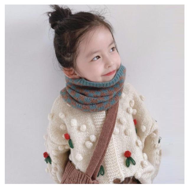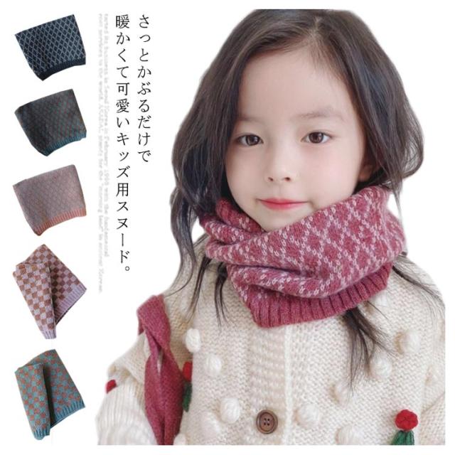 ネックウォーマー ニット スヌード キッズ 子供用 ベビー マフラー チェック柄 防寒 首巻き 送料無料 女の子 男の子 幼稚園 保育園 小学生