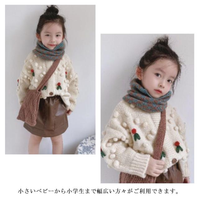 | さっとかぶるだけで暖かくて可愛いキッズ用スヌード。 柔らかでチクチクしない生地、肌触りはとても良い◎ リング状の輪っかタイプで、抜け落ちる心配なく、ドアなどに引っかかる心配もありません。 小さいベビーから小学生まで幅広い方々がご利用できます。 | |