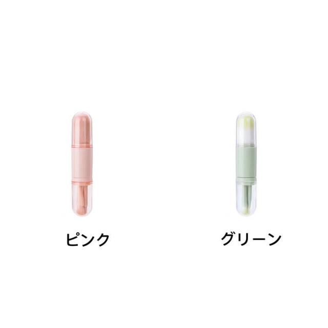 メイクブラシ 4in1 化粧筆 コスメ コンパクト フェイスブラシ 化粧ブラシ ベースメイク パウダーブラシ 携帯用 メイクグッズ おしゃれ やわらかい ピンク グリーン 送料無料