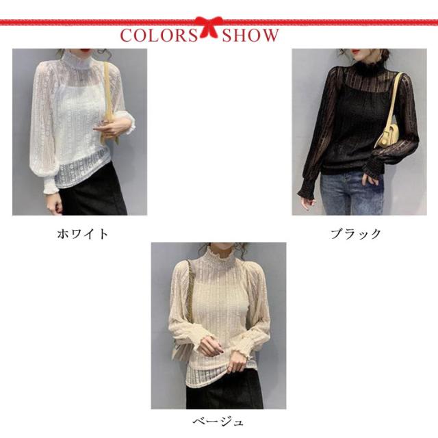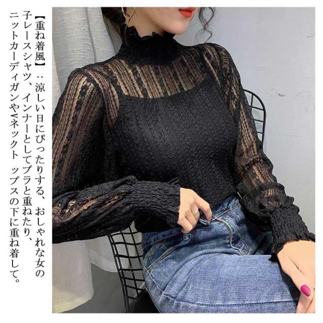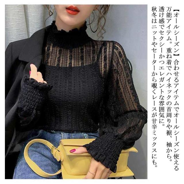 立ち襟 レース ブラウス レディース シースル ハイネック 長袖 ブラウス レース トップス 結婚式 お呼ばれ セクシー フリルブラウス レース インナー プルオーバー 長袖 パーティー 送料無料