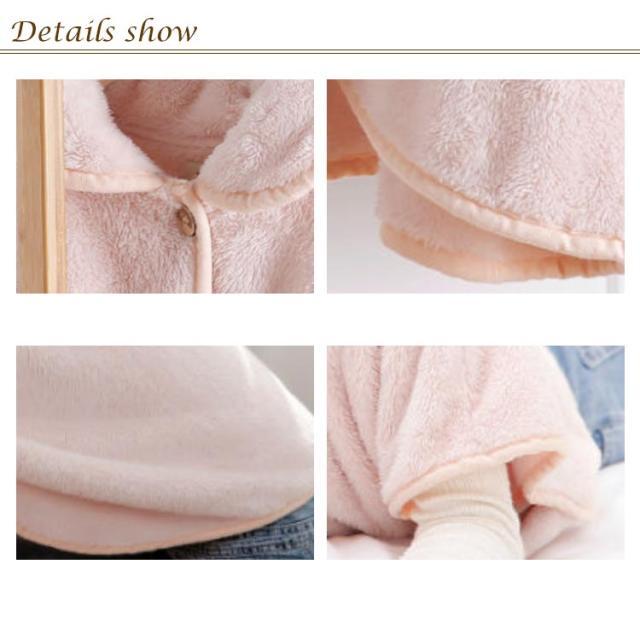| 肩をすっぽりと覆ってくれるふわもこケープ。 軽量ながら暖かいフリース素材が着心地バツグン! 腕を動かしやすいポンチョタイプのケープは家事にも、リラックスタイムにもぴったり! おやすみ時の肩の冷え防止にもぴったり。 妊婦産婦、お年寄り、ご両親へのプレゼントとしても大変喜ばれるです。 | |