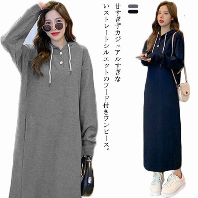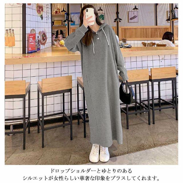 裏起毛 ワンピース パーカーワンピース パーカー 防寒 ワンピース スウェット あったか ゆったり ロングワンピース フード付き チュニック 長袖 トレーナー 暖かい ルームウェア 大きいサイズ レディース 体型カバー ロング