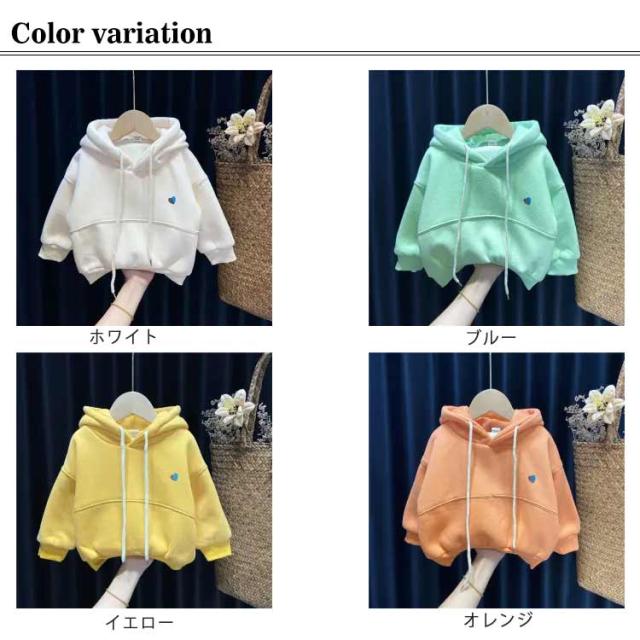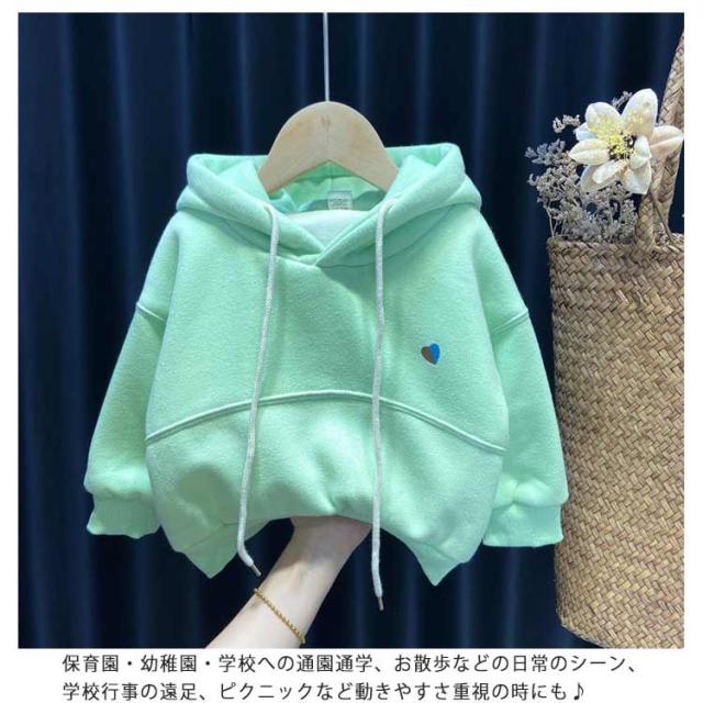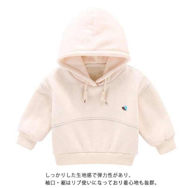 (送料無料)パーカー キッズ ボア 裏起毛 厚手 女の子 プルオーバー スウェット ハート柄 ワンポイント 秋冬 ベビー服 赤ちゃん トレーナー フード 無地 防寒 保温 あったか かわいい 90/100/110/120/130/140cm