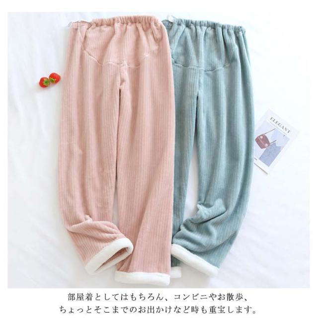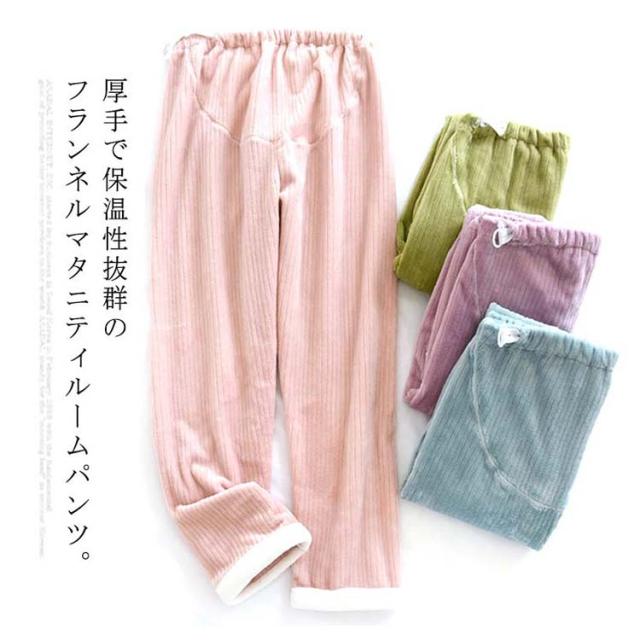 マタニティ ルームパンツ もこもこ ふわふわ 部屋着 長ズボン マタニティウェア 暖パンツ フランネル 寒さ対策 秋冬 厚手 洗える