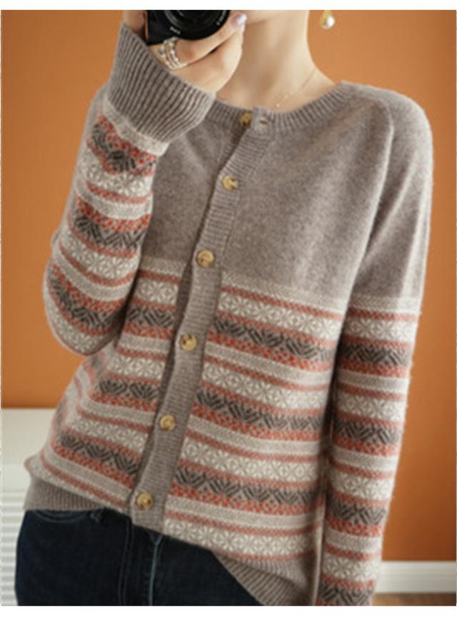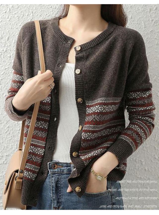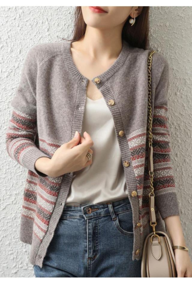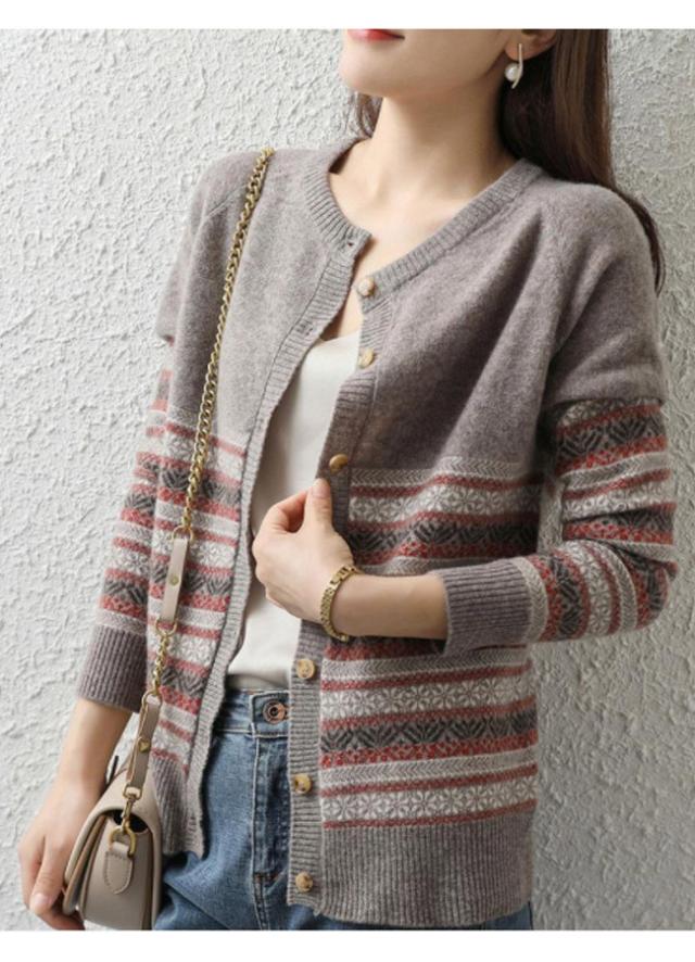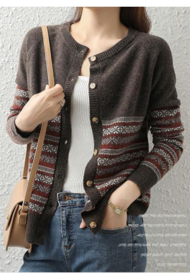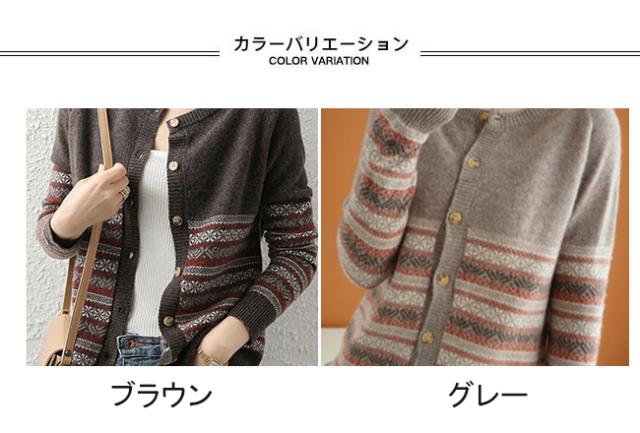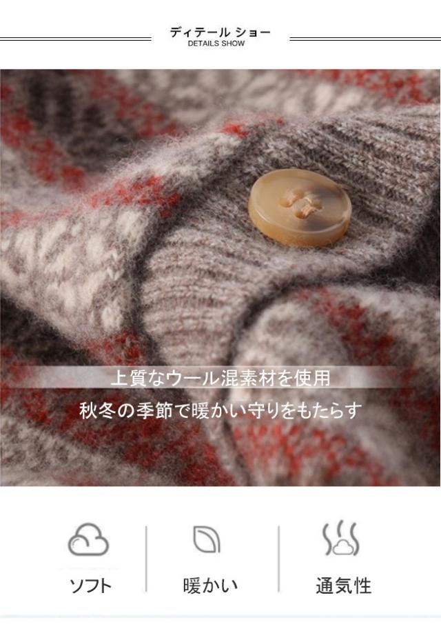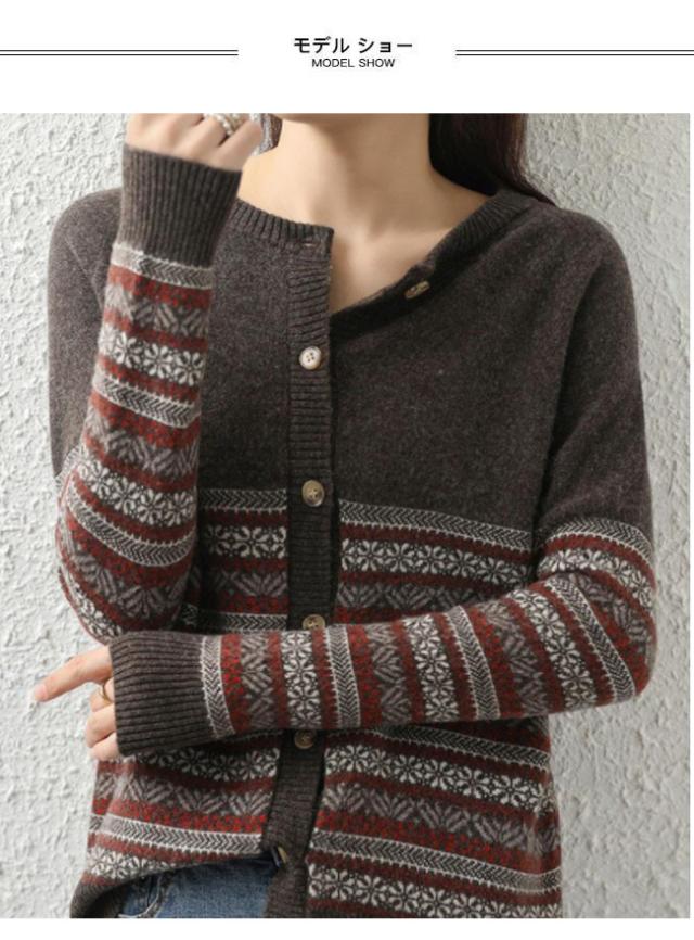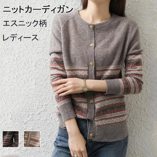 カーディガン ウール混 レディース ニットカーディガン 厚手 エスニック柄 40代 50代 ボタンカーディガン オフィス 30代 20代