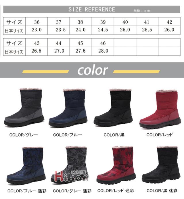 防寒ブーツ メンズ レディース スノーブーツ 裏起毛 暖かい シューズ ウィンターブーツ ミドルブーツ ダウンブーツ 秋冬