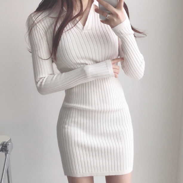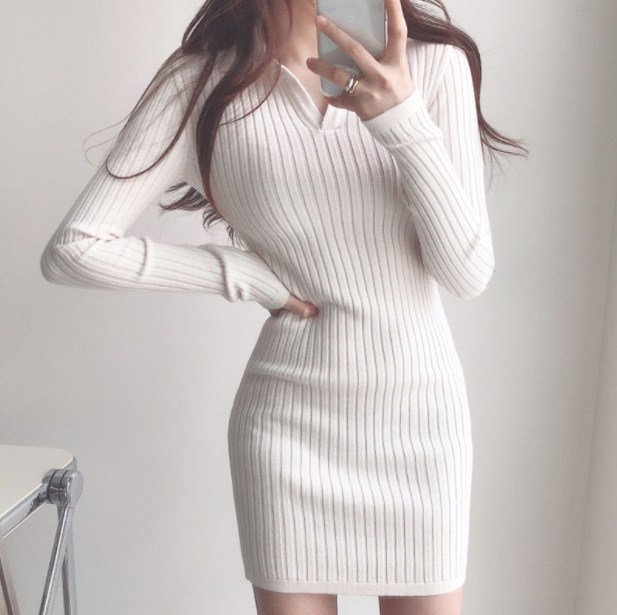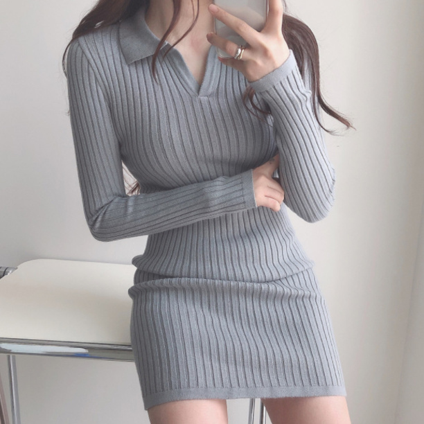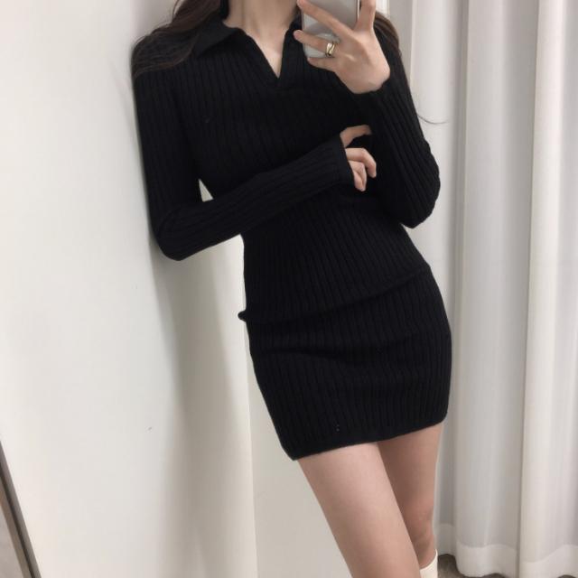 ニットワンピース リブニットワンピ タイトワンピース ストレッチ スリット入り 伸縮性 長袖 タイトワンピース ミニ丈 オフィス シンプル OL 重ね着