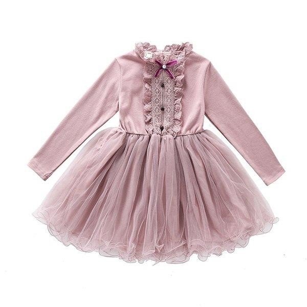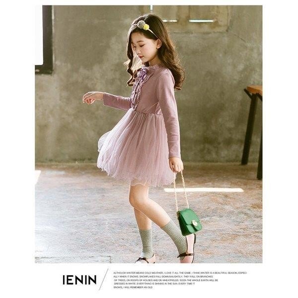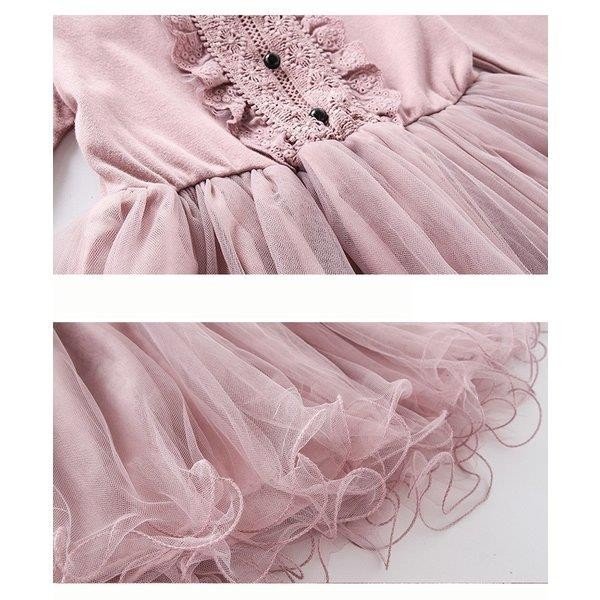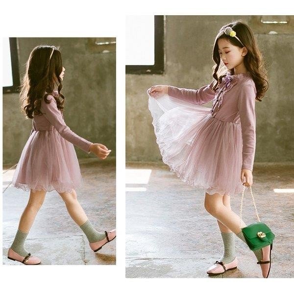 子供服 ワンピース チュールスカート 春秋 女の子 膝丈 ひざ丈 レース切り替え 長袖 おしゃれ きれいめ 子ども服 可愛い ジュニア服 卒園式/入学式/パーティ