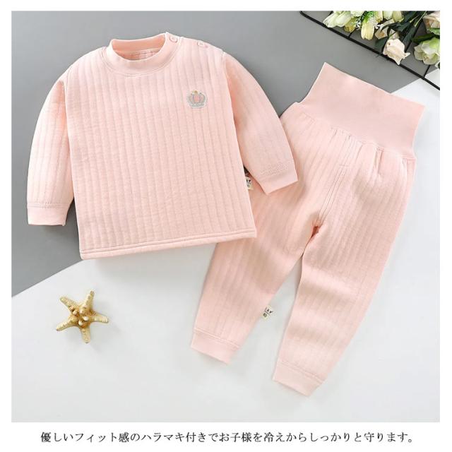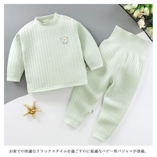 【送料無料】ベビー服 パジャマ 長袖 上下セット 綿100% 赤ちゃん キルト 厚手 腹巻付き 男の子 女の子 ルームウエア 春秋冬 部屋着 寝巻き 長ズボン 防寒 暖かい 無地 シンプル 60/70/80/90/100/110 cm