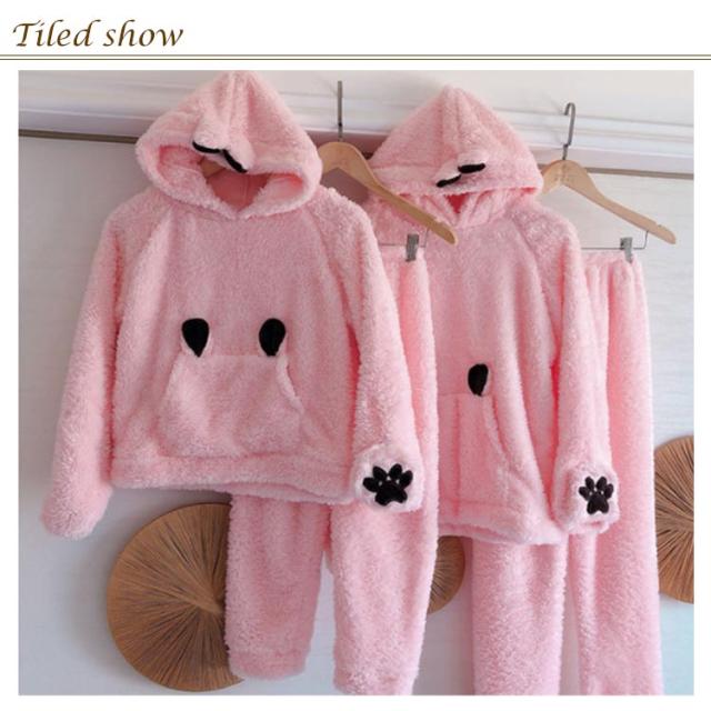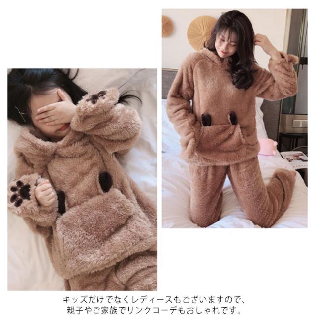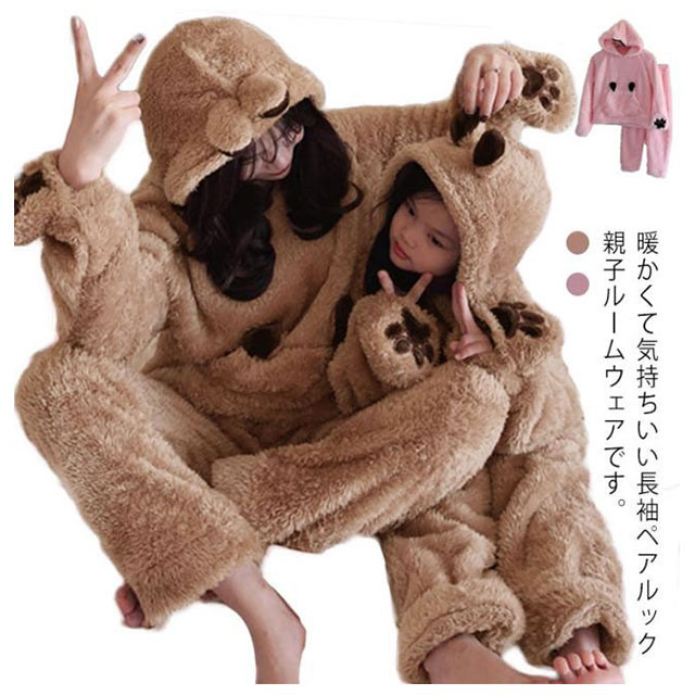 リンクコーデ 親子 セット フランネルパジャマ 長袖 親子 ペアルック 冬 ルームウェア 親子ペア パジャマ ウサギミミ 親子コーデ 上下セット 暖かい 両面ボア モコモコ 手袋付き ママ 娘 お揃い 部屋着 可愛い 裏起毛 冬物 プレゼント