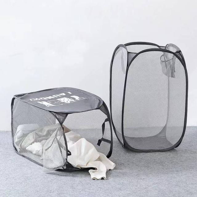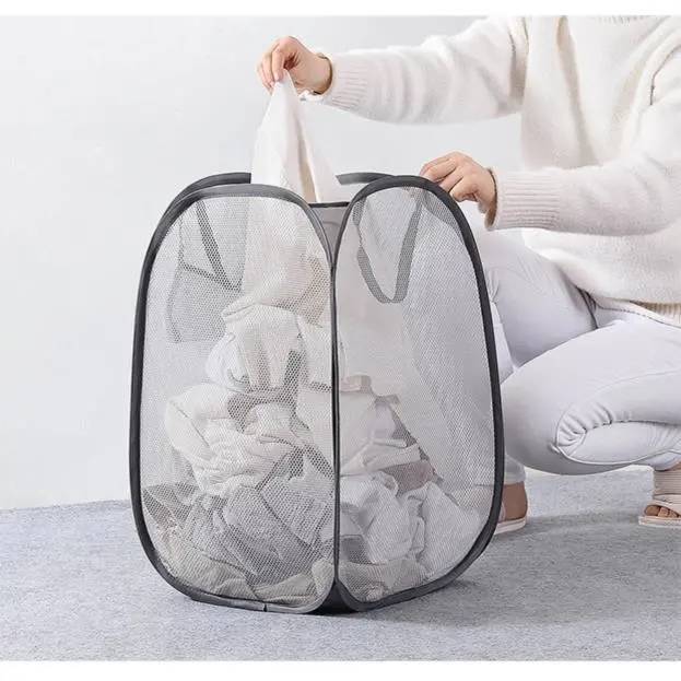 メッシュ ランドリーバスケット 洗濯かご ランドリーかご 折りたためる 大容量 ナイロン 取っ手付き 洗濯物入れ 脱衣かご 大きい 持ち運び便利 コンパクト 省スペース 洗面所 収納ケース 便利 一人暮らし 部屋 インテリア