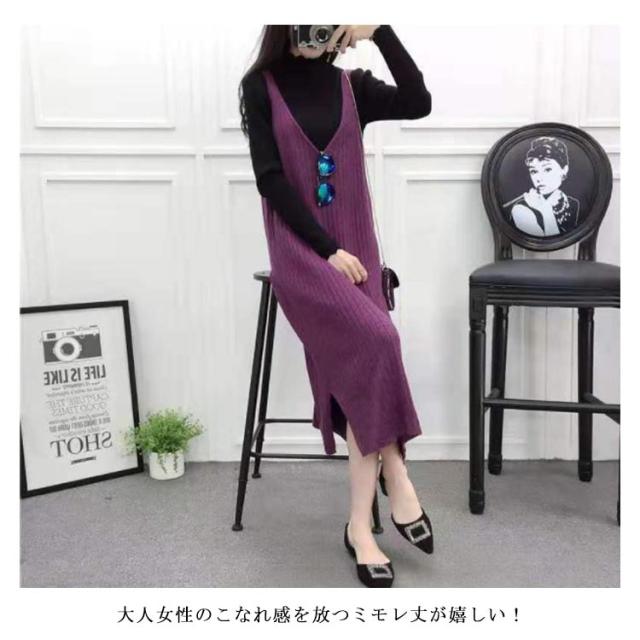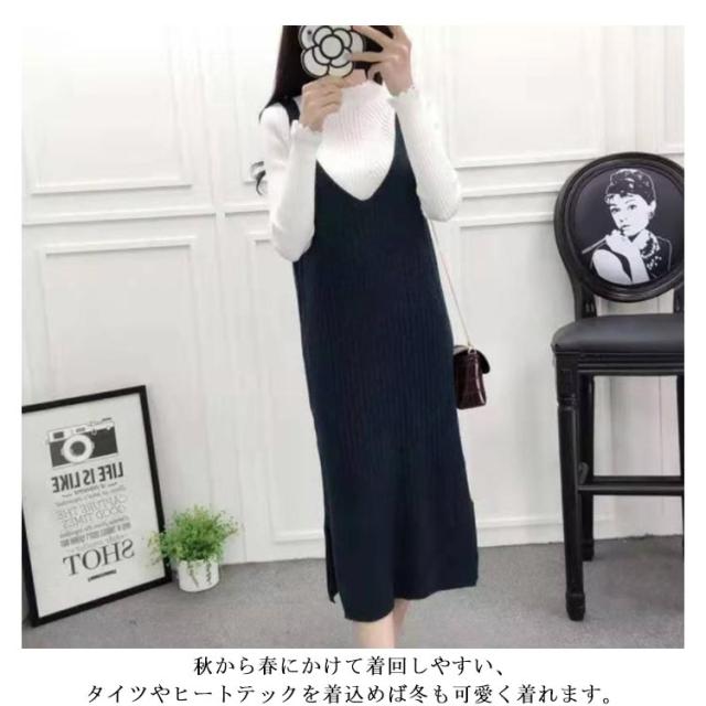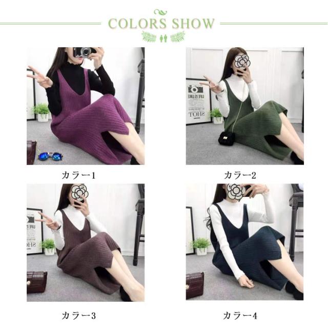 S-2XL・送料無料! ワンピース レディース 秋 冬 ニットワンピース キャミソールワンピース ロングワンピース ミモレワンピース ノースリーブ キャミワンピ ニット Vネック 無地 お洒落 シンプル カジュアル インナー マタニティ 体型カバー