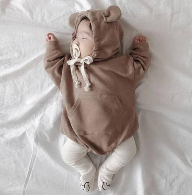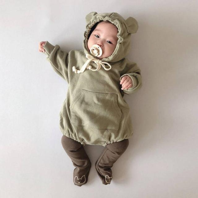 くまさん ロンパース パーカー カバーオール スウェット 送料無料 フード付き 着ぐるみ くま くま耳 子供服 ベビー服 男の子 女の子 おしゃれ 赤ちゃん 新生児 ベビー 綿 コットン 可愛い 出産祝い プレゼント 長袖 秋 冬