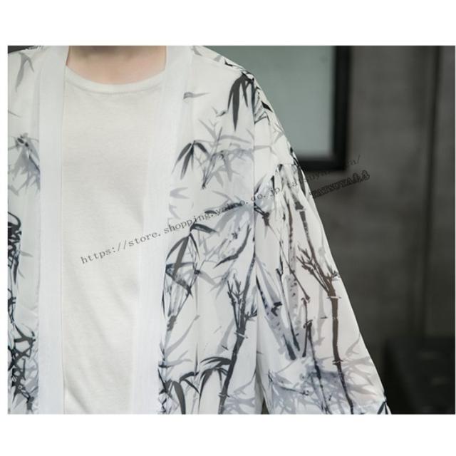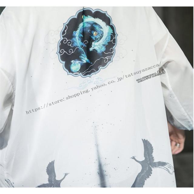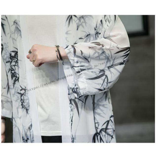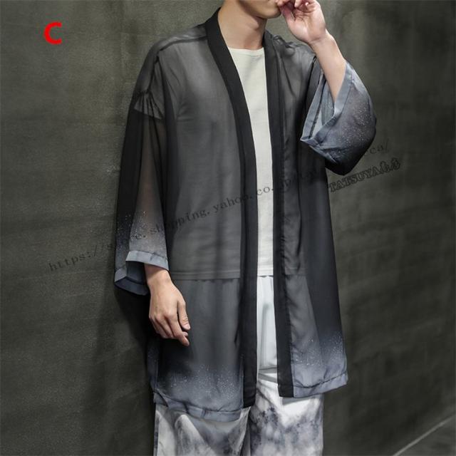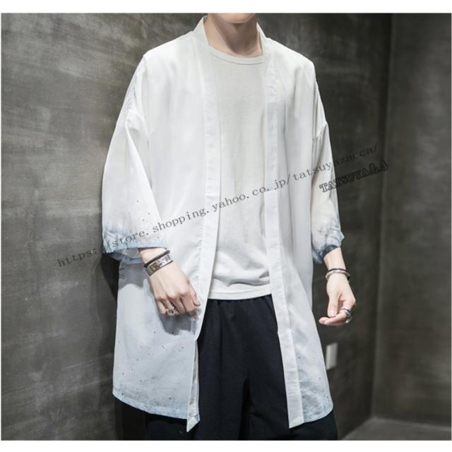 羽織 メンズ ロング丈 和風 はおり リネンコート 柄物 カジュアル 七分袖 甚平 着物 涼しい ゆったり 薄手 おしゃれ 四季適用 浴衣風 男性 大きいサイズ