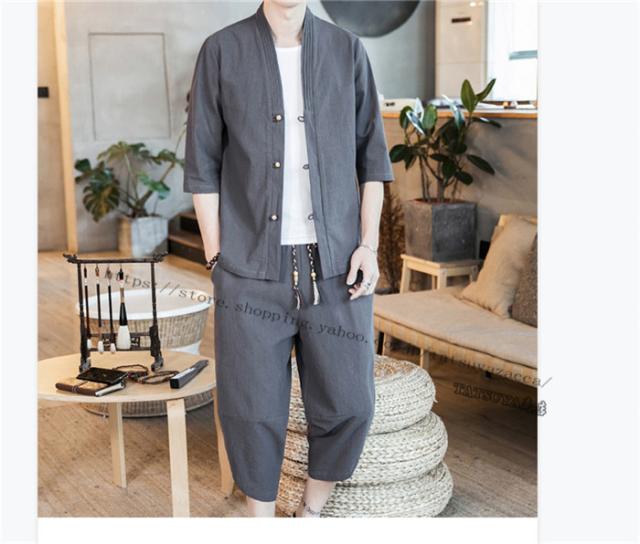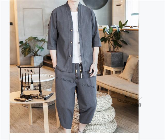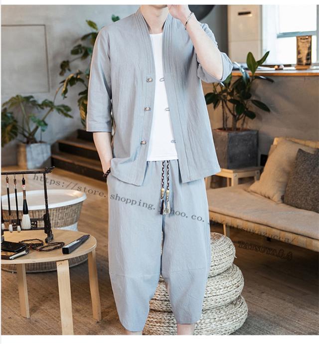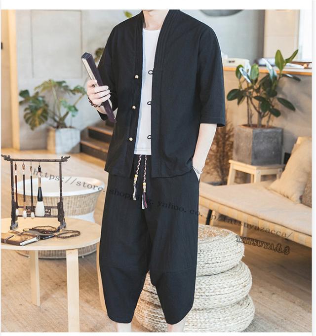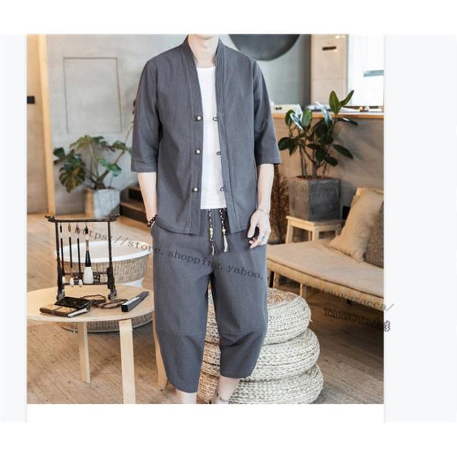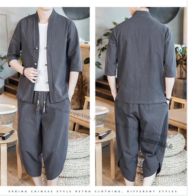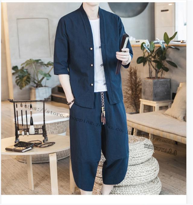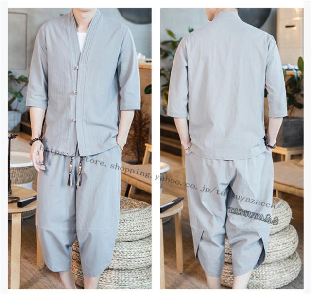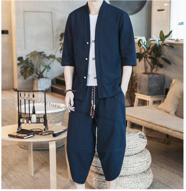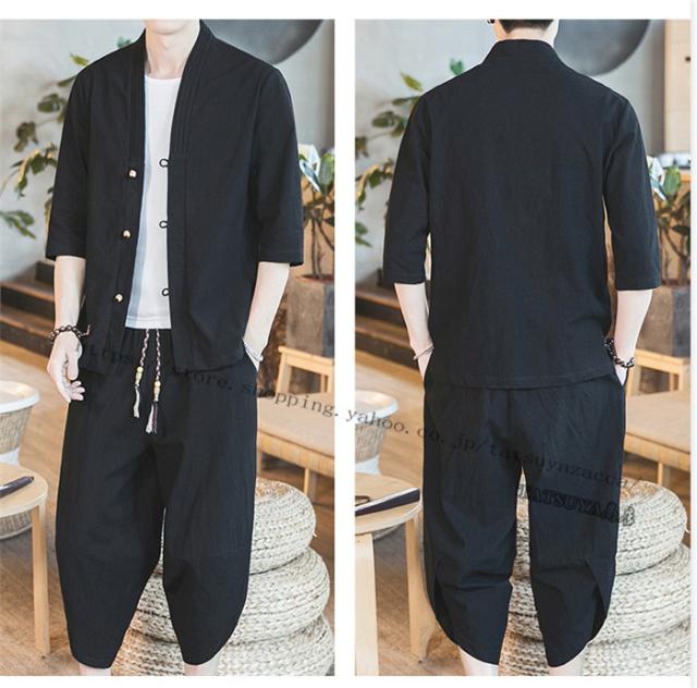 2021新作 セットアップ メンズ チャイナ服 リネンジャージ 七分袖 シャツ 上下2点セット スウェットセット サルエルパンツ ゆったり 春夏秋