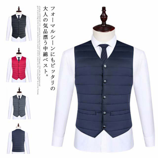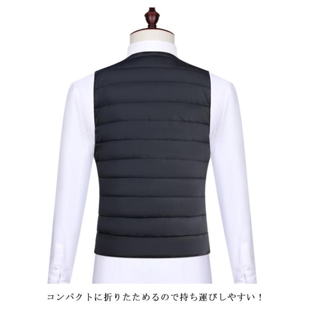 中綿ベスト メンズ インナーベスト ジレベスト ノースリーブ アウター ダウンベスト 中綿ジャケット スリム 軽量 薄手 コンパクト すっきり 暖かい 防寒 インナー アウター 無地 大きいサイズ ビジネス フォーマル カジュアル 秋冬