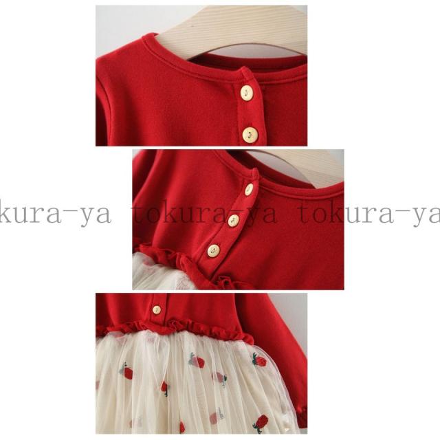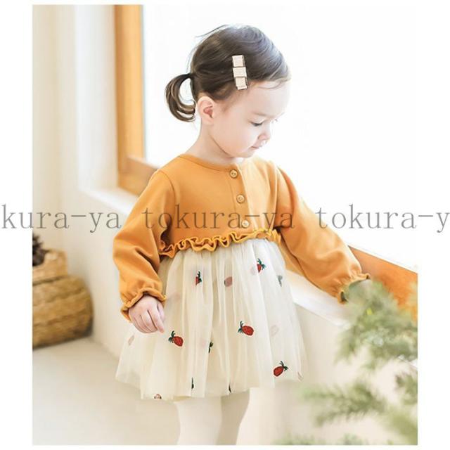 韓国子供服 ワンピース 子供 子供服 ベビー服 女の子 可愛い パイナップル柄 レッド イエロー 上品 フォーマル ベーシック 秋 春 冬 70cn/80cm/90cm/100cm