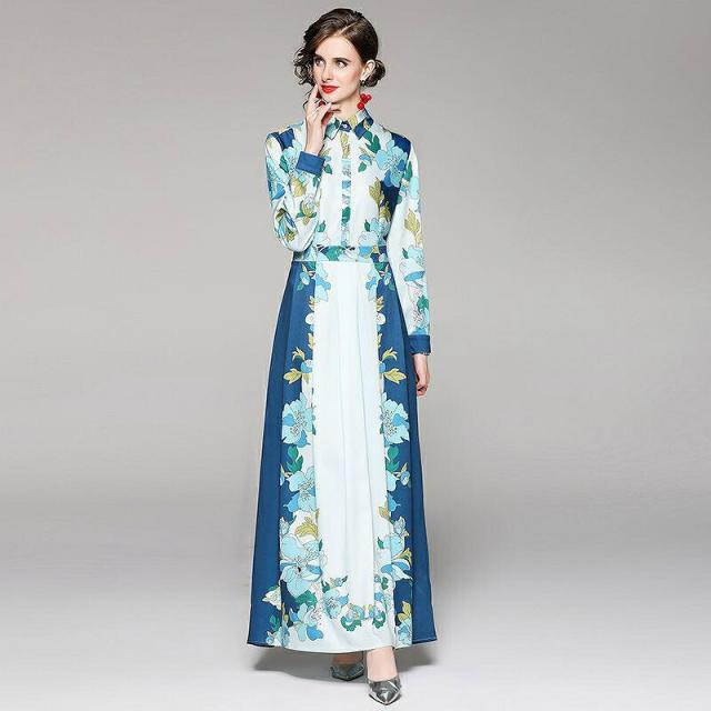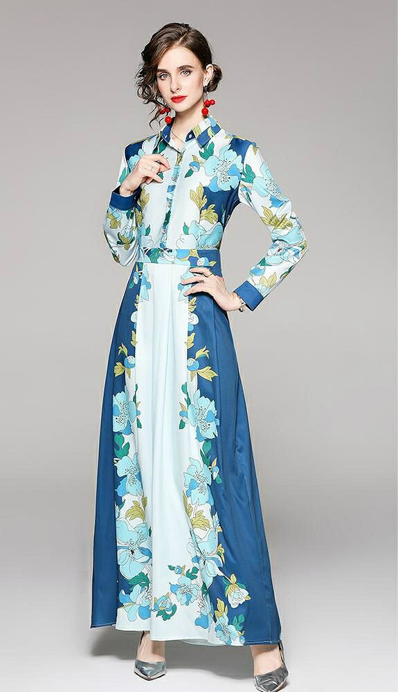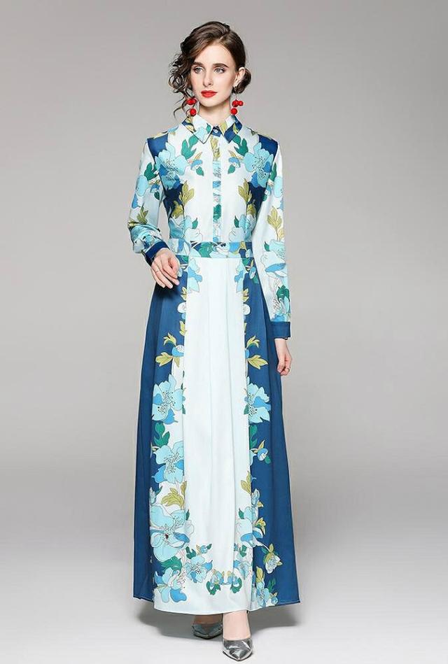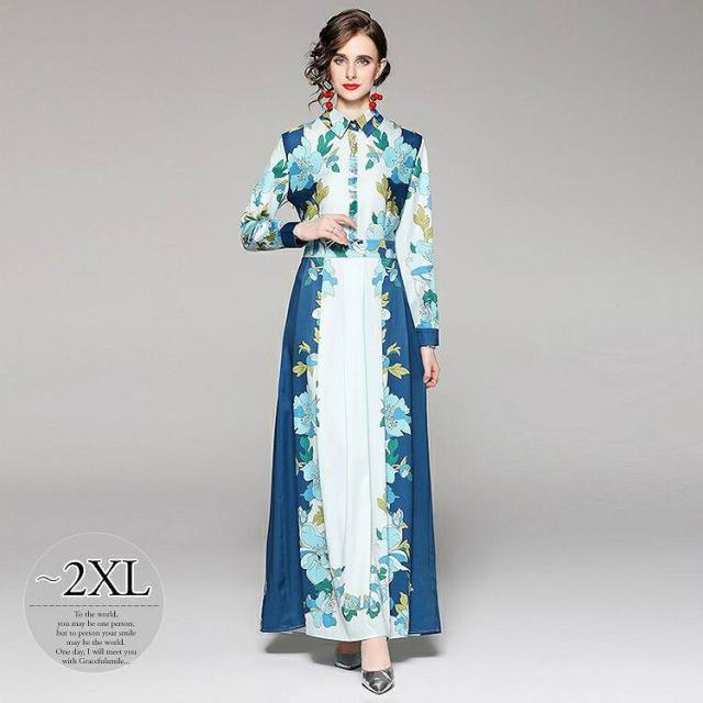 ワンピース 襟付き プリント柄 花柄 ウエストマーク 袖ボタン ボタン ドライブ 大人可愛い 女子旅 リゾート 女子会 休日スタイル お出かけファッション