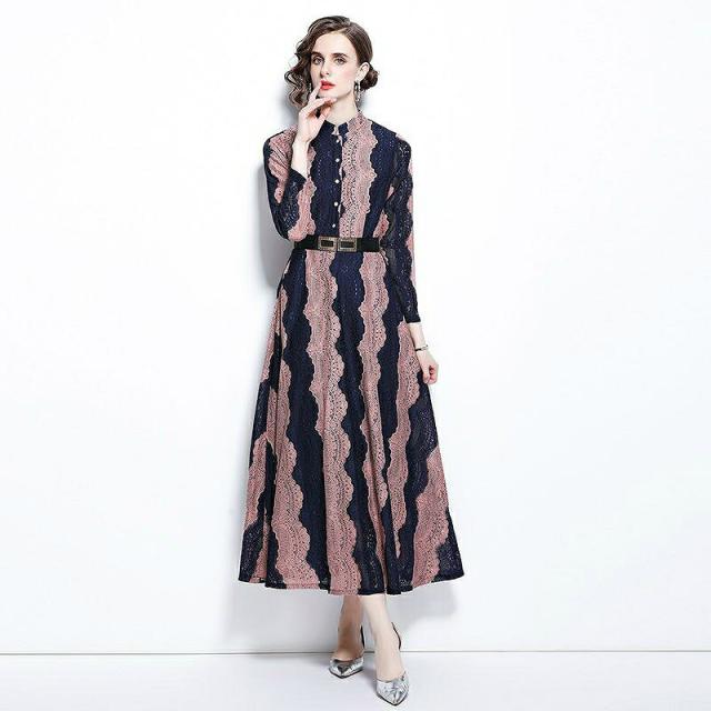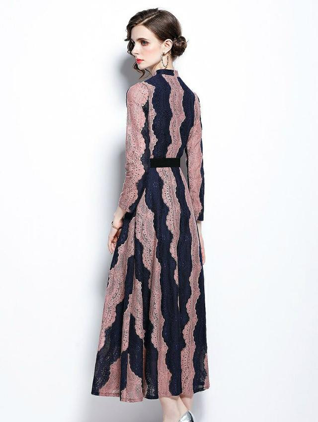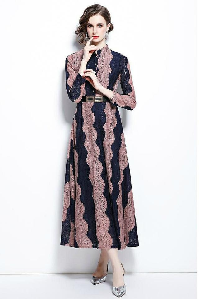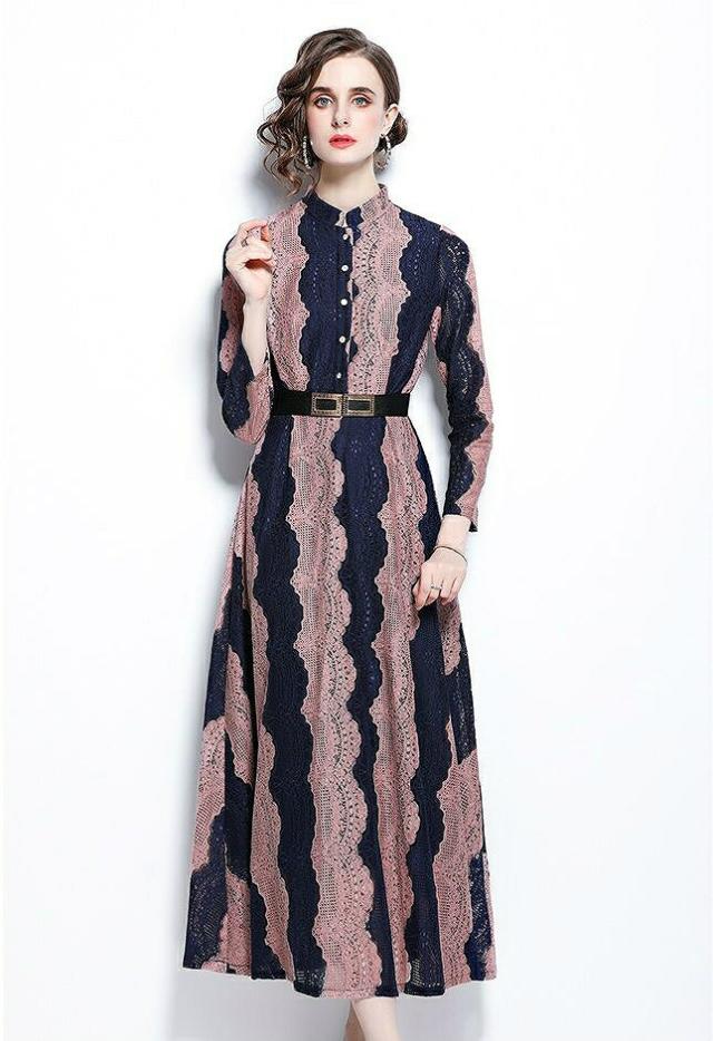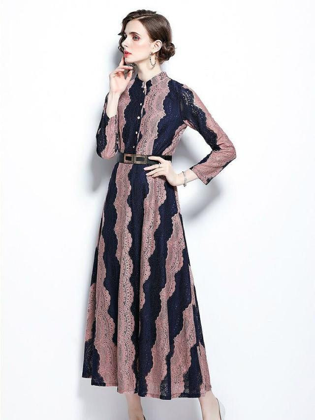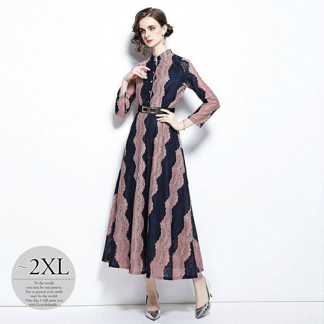 ワンピース 襟付き ウエストマーク ロングワンピース ツートン お出かけファッション ガーリー 食事会 清楚 定番 キレイ目 休日スタイル 休日 ドライブ