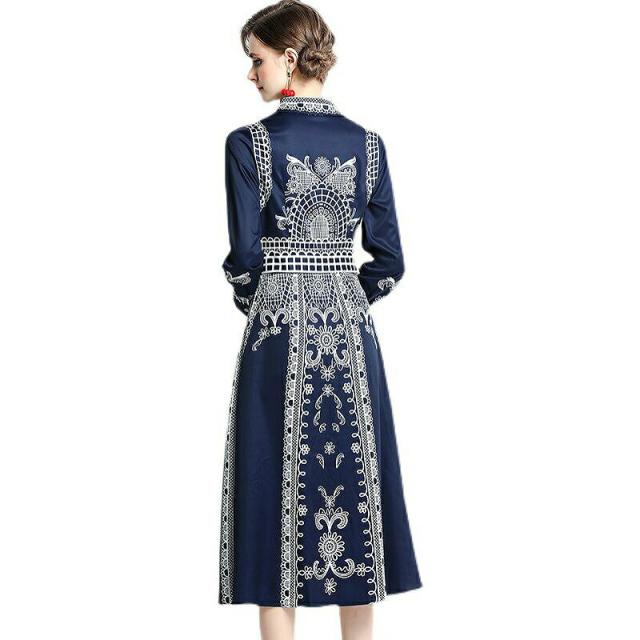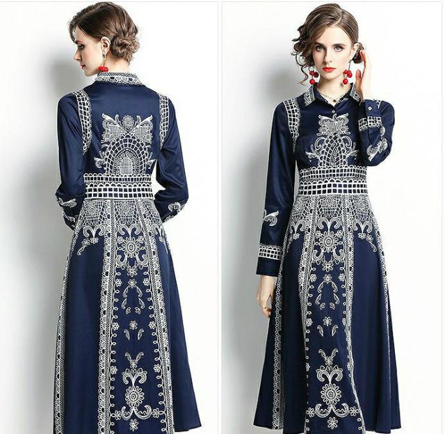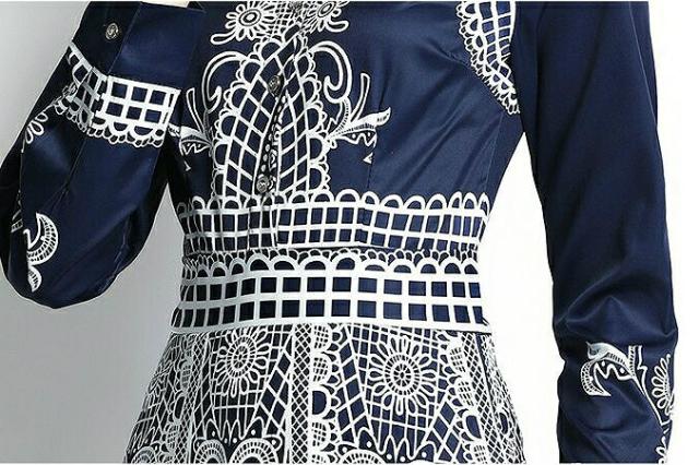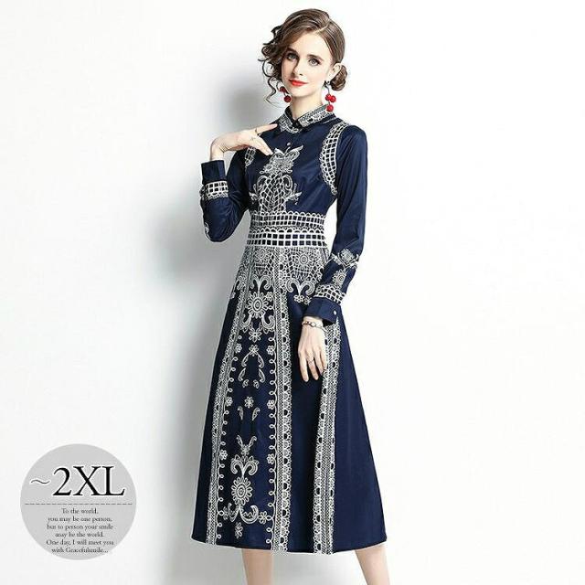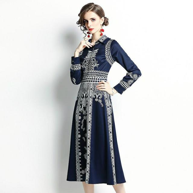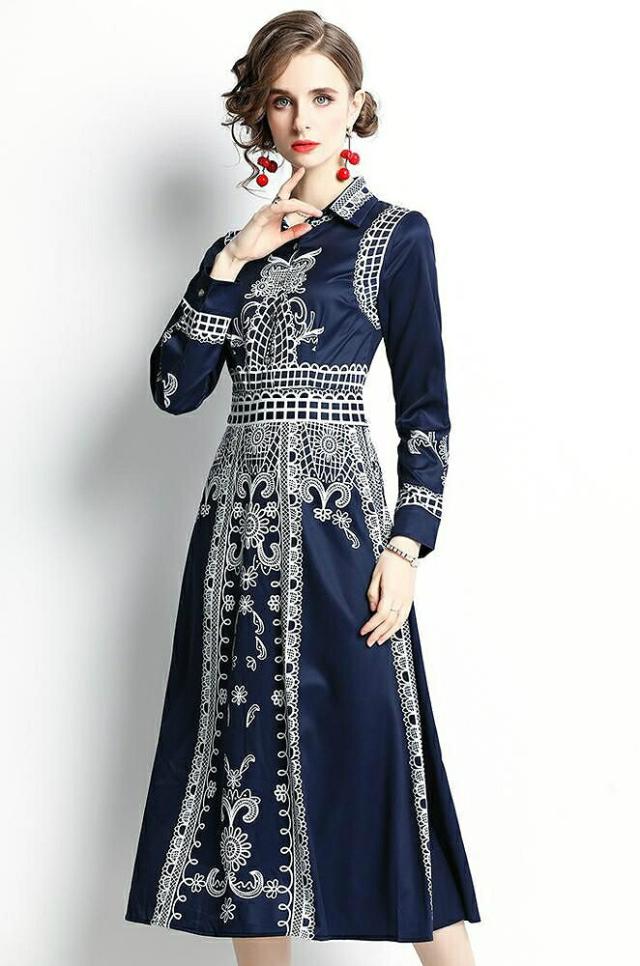 ワンピース プリント柄 襟付き 長袖 ウエストマーク ボタン 母親 リゾート フェミニン ストリート ママスタイル ガーリー お出かけ 休日スタイル