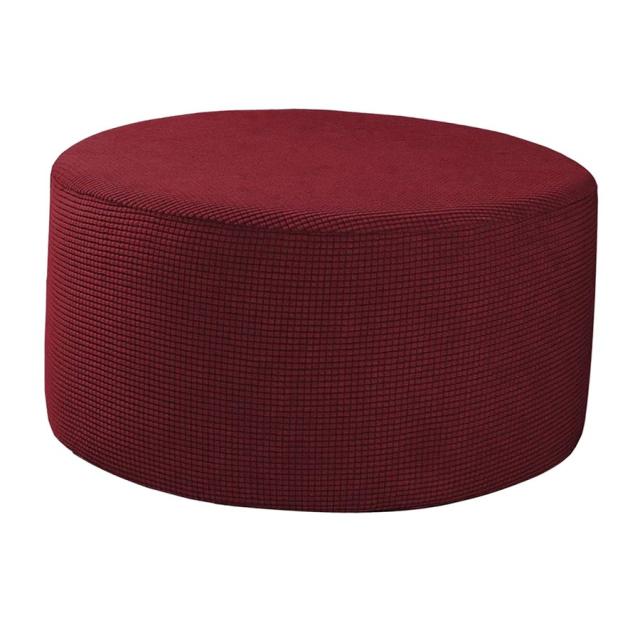 オットマンスリップカバーラウンドオットマンフットスツールカバーリムーバブルワインレッド