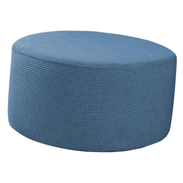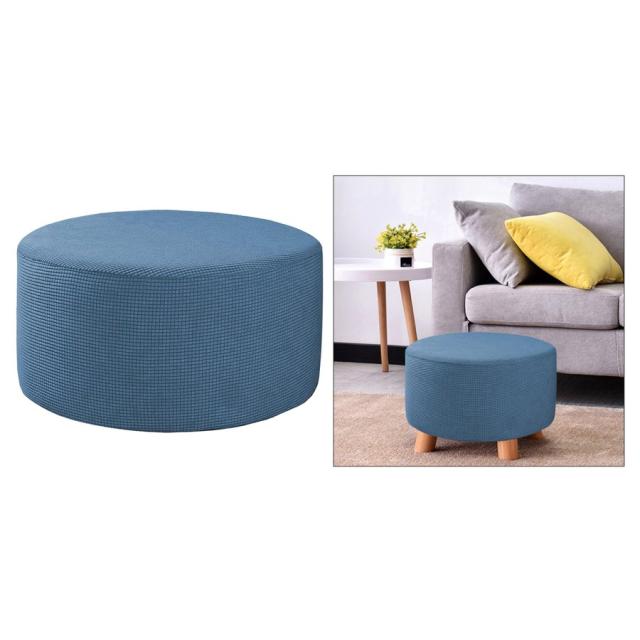 オットマンスリップカバーラウンドオットマンフットスツールカバーリムーバブルブルー