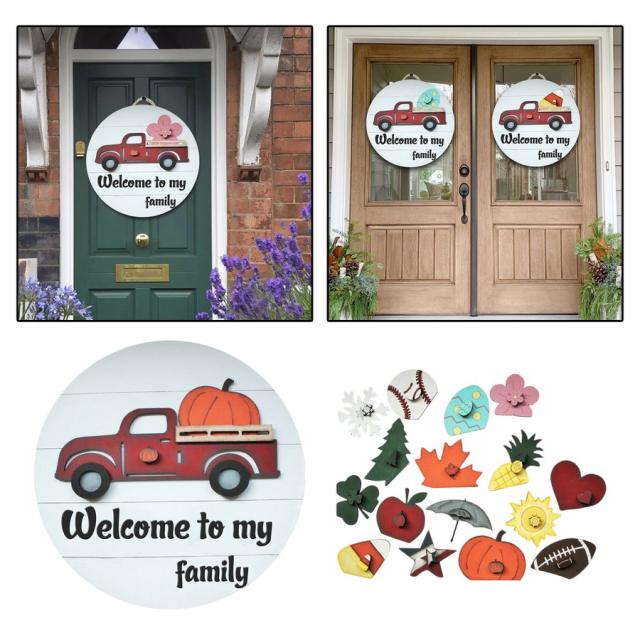 歓迎看板フロントドア-ホリデーホーム装飾で変更可能アイコン-木製ドアハンガーの農家フロントポーチ装飾プラーク