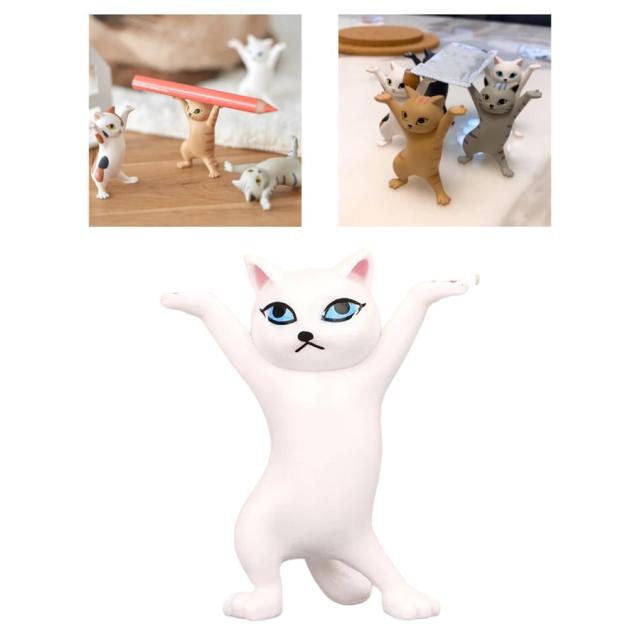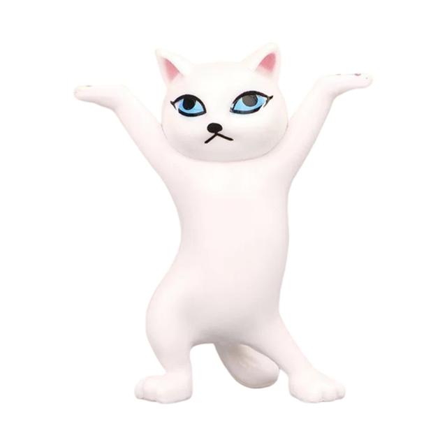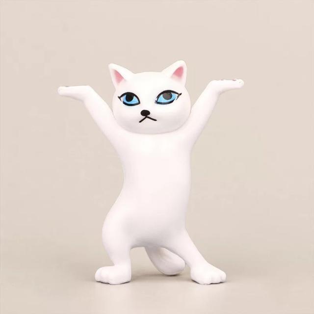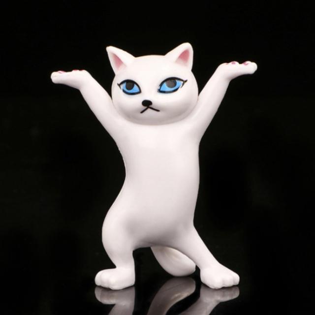 踊るかわいい猫フィギュア飾り卓上彫刻装飾白