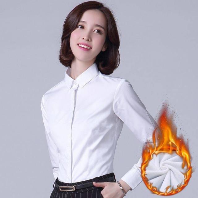隠しボタン付き Yシャツ レディース 秋冬 ワイシャツ ブラウス 裏起毛シャツ 暖かい 秋 冬 事務 シンプル 無地 就活 冠婚葬祭 定番 長袖 フォーマル リクルート スーツ 制服 着?せ 送料無料