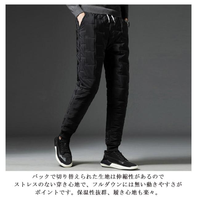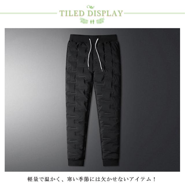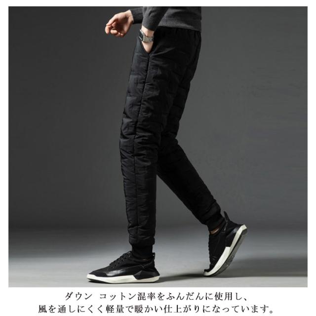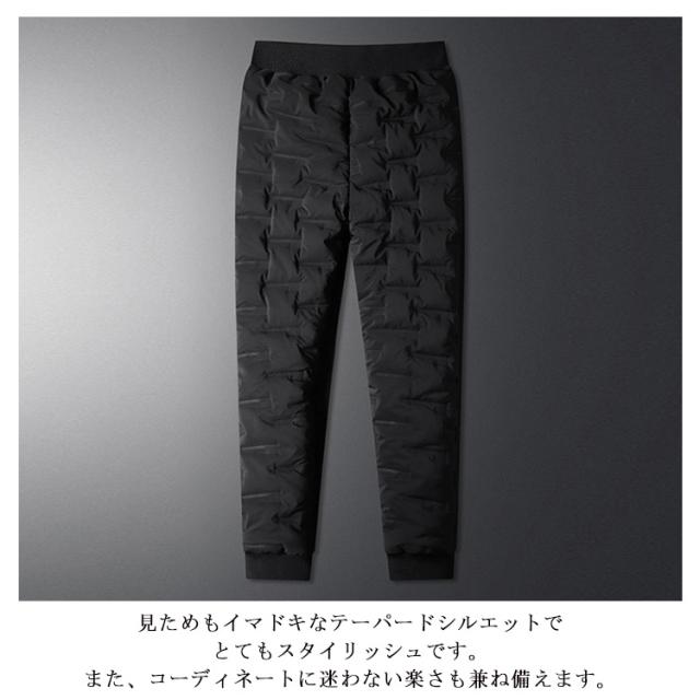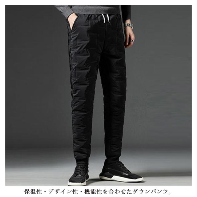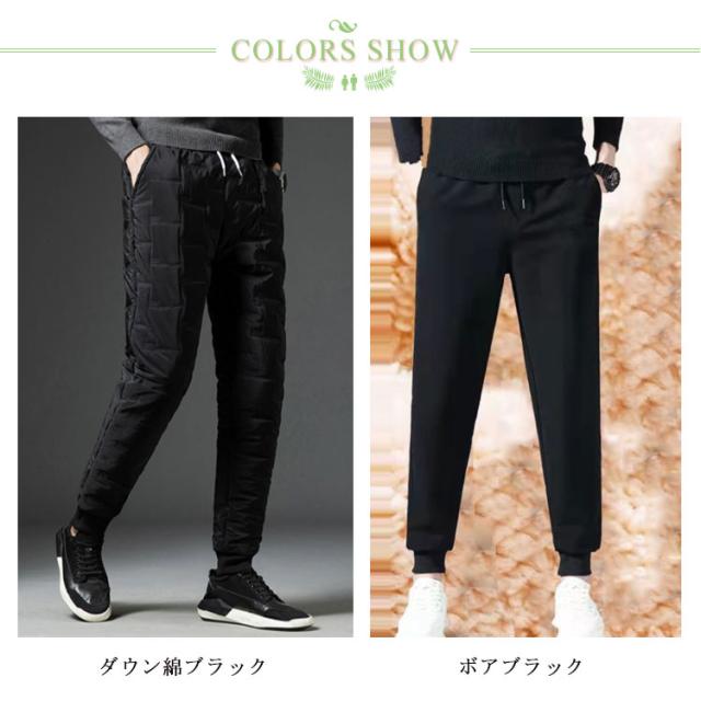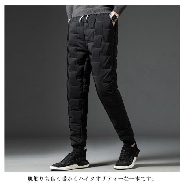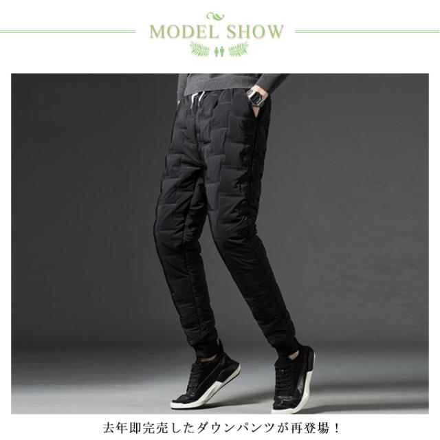 | M-5XL・コスパ抜群! 去年即完売したダウンパンツが再登場! 保温性・デザイン性・機能性を合わせたダウンパンツ。 ダウン コットン混率をふんだんに使用し、風を通しにくく軽量で暖かい仕上がりになっています。 フロントにはサイドポケット二つ、一般的なスマートフォンがすっぽりと収まる深さで使い勝手の良い作りです。 肌触りも良く暖かくハイクオリティーな一本です。 バックで切り替えられた生地は伸縮性があるのでストレスのない穿き心地で、フルダウンには無い動きやすさがポイントです。保温性抜群、履き心地も楽々。 アウトドアの防寒ウエアとしても十分。 軽量で温かく、寒い季節には欠かせないアイテム! 見ためもイマドキなテーパードシルエットでとてもスタイリッシュです。 また、コーディネートに迷わない楽さも兼ね備えます。 アウトドアやレジャーにもお使い頂けます。 | |