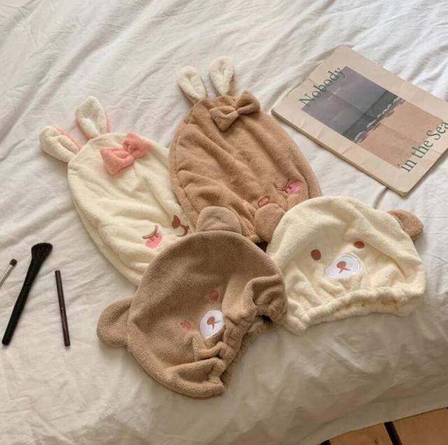 2点セット タオルキャップ ヘアタオル ドライキャップ ヘア タオル タオルドライ 吸水タオル レディース お風呂上がり バス用品 ヘアタオル かわいい 熊 ウサギ 送料無料