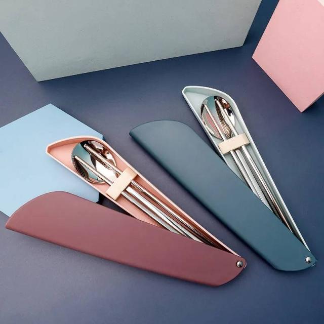 全4色 ステンレス製 箸箱 セット 箸 スプーンセット 食事 ケース付き おでかけ 携帯用 弁当用 かわいい はし ケース 携帯通勤 通学 送料無料