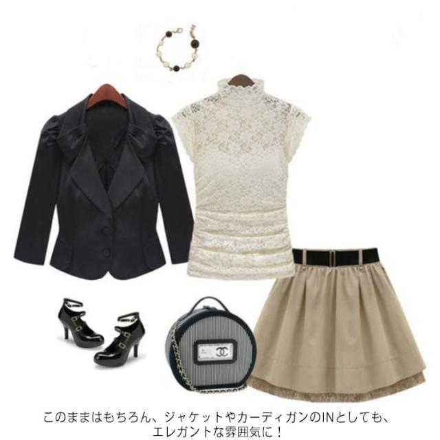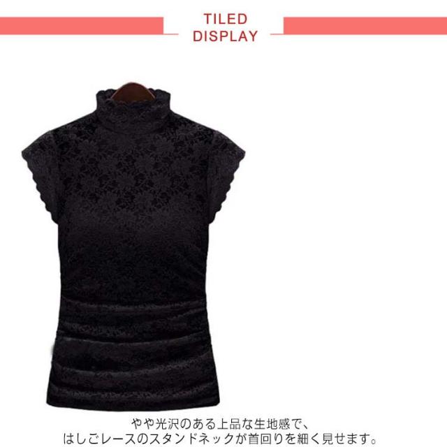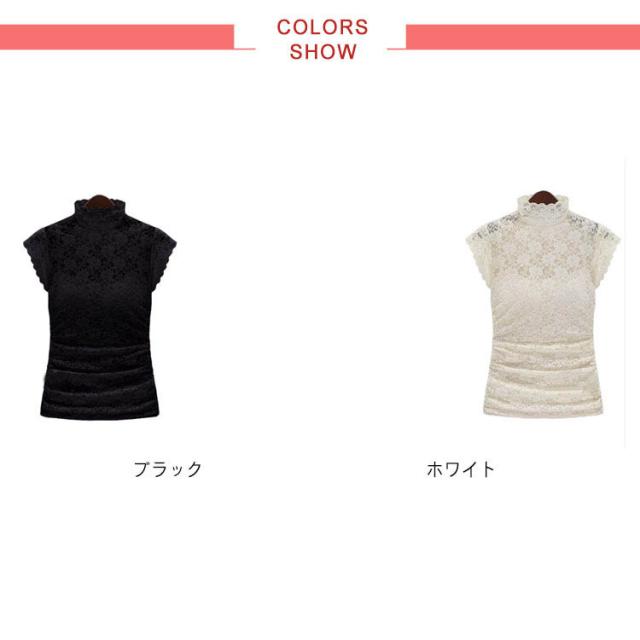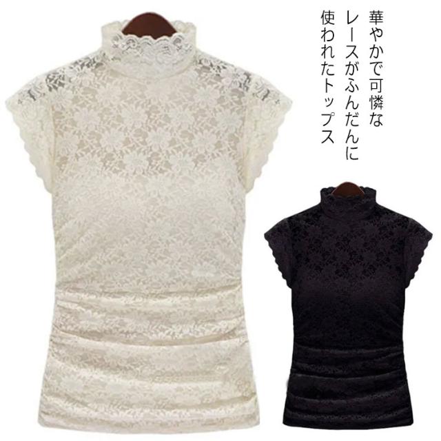 レースブラウス フリルネック レディース レーストップス シャツ ブラウス ノースリーブ ハイネック フレンチスリーブ 刺繍レース シースルー プルオーバー キャミソール インナー 花柄レース 透け レイヤード フェミニン 上品 無地 オフィス 通勤 通学 送料無料