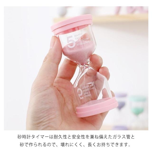 | カラフル砂時計5個セット(3分/5分/10分/15分/20分/30分)! お子様の勉強時間、ゲームの時間等の日常生活を砂時計により決めることで、お子様自身の時間感覚が養われ、時間の使い方をしっかりと学ぶことが出来ます。 シンプルで可愛いデザインが子供も大人も楽しくお使いいただけます。 砂時計タイマーは耐久性と安全性を兼ね備えたガラス管と砂で作られるので、壊れにくく、長くお持ちできます。 歯磨きや勉強、お料理やヨガなどにもピッタリです。 静かに優しく時を刻み、洋室や和室を問わずどのようなお部屋にも合わせやすいです。 プレゼントとして、子供や友達に贈りしてお勧めます。 | |
