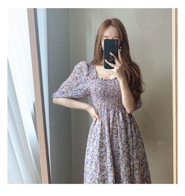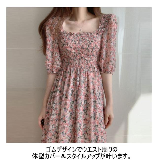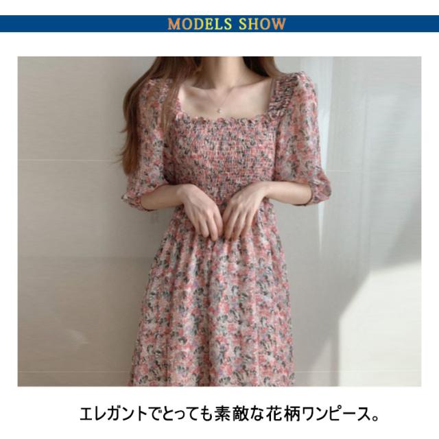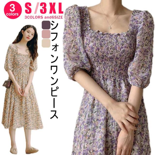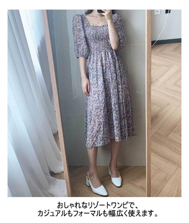 ロング シフォン スクエアネック マキシ丈ワンピース サマードレス 花柄ワンピース レディース 40代 ハワイ 20代 旅行用 大人 沖縄 30代 薄手 可愛い お洒落 花柄 フェミニン 半袖