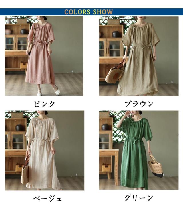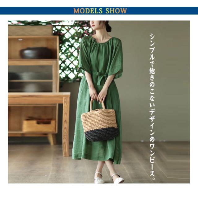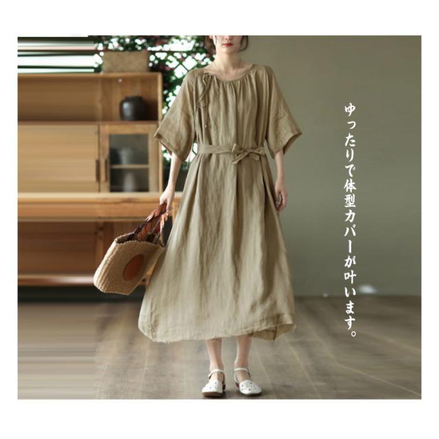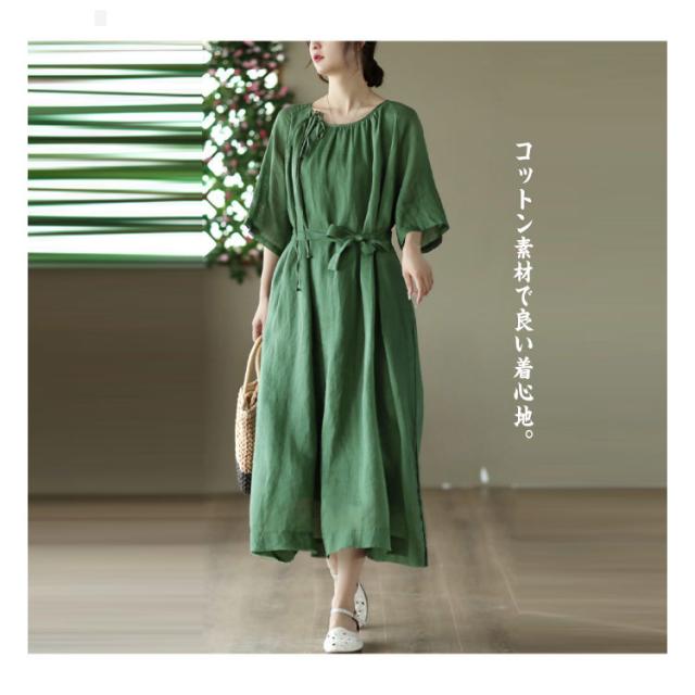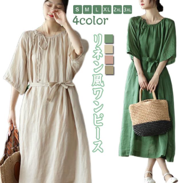 フレア マキシワンピース ワンピ レディース 送料無料 春 ロング 半袖 マキシ ロングワンピース マキシワンピース 5分袖 リボン Aライン 体型カバー 大きいサイズ ワンピース