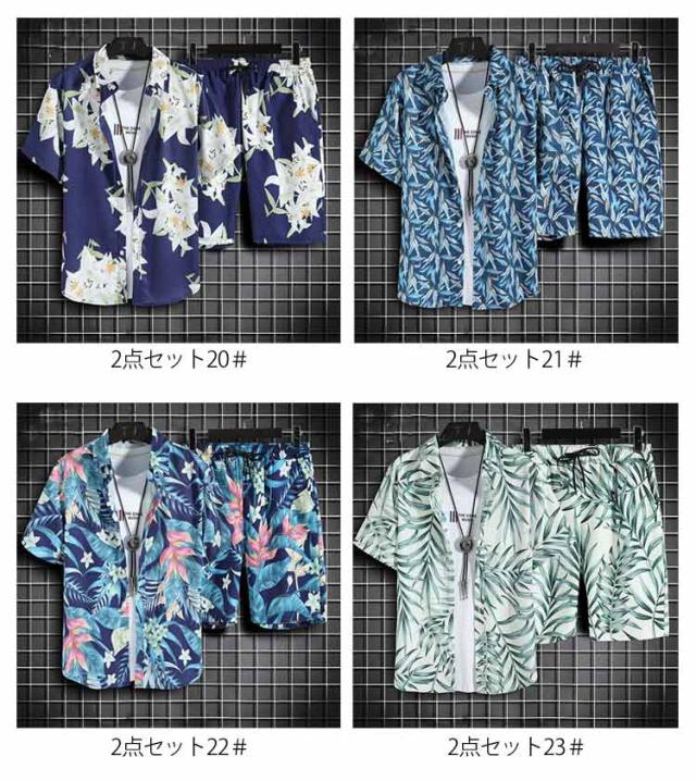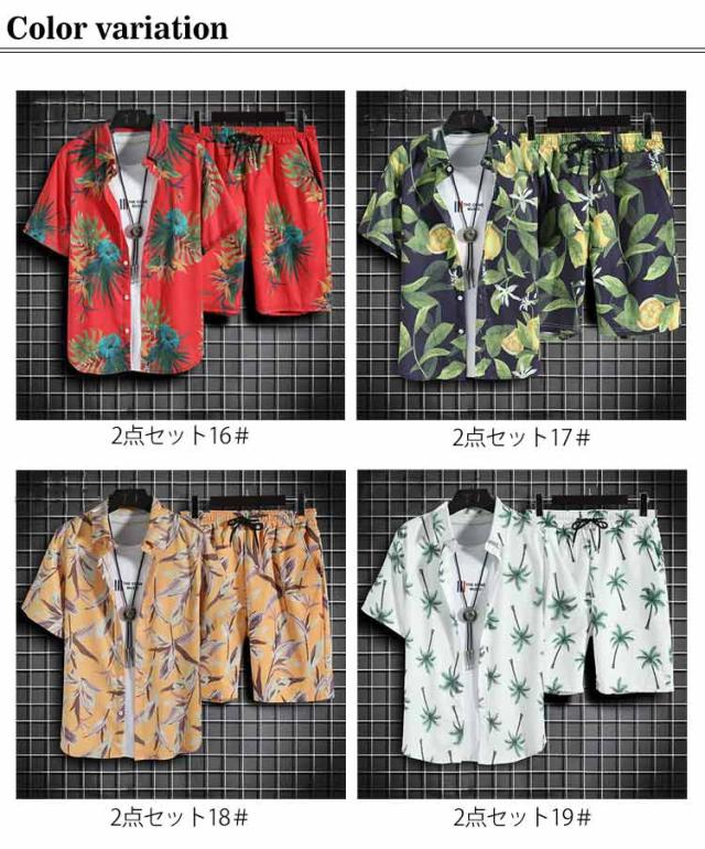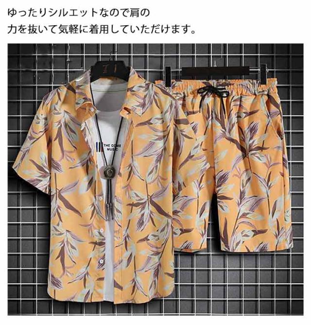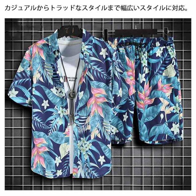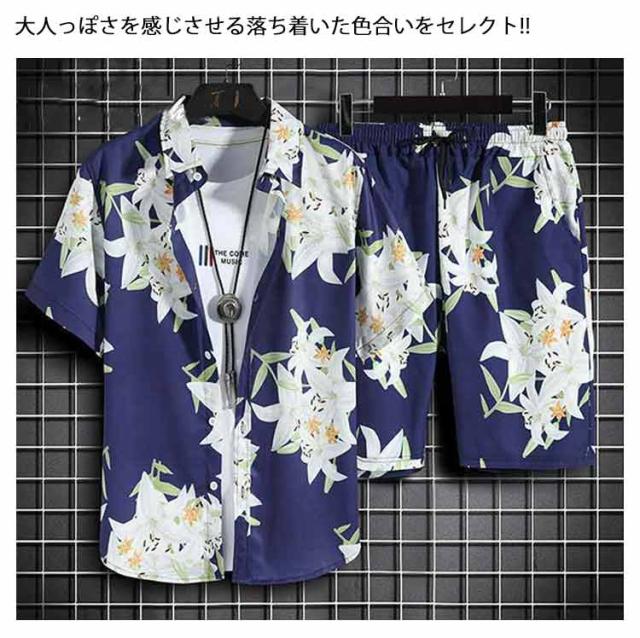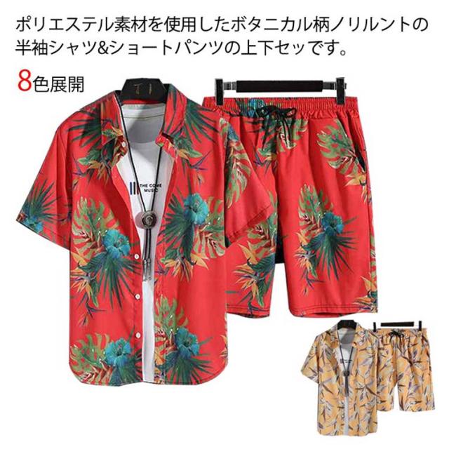 上下セット ショートパンツ ハーフパンツ 半袖シャツ アロハシャツ メンズ フラワー 半ズボン ボタニカル柄 トップス カジュアルシャツ ショーツ 短パン 2点セット 半袖シャツ 開襟シャツ セットアップ