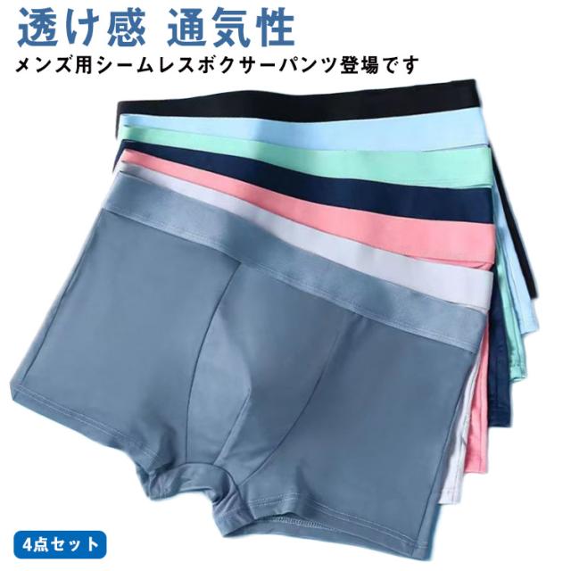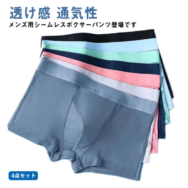 スポーツウェア 透け感 4点セット 男性下着 ボクサーパンツ パンツ メンズ 下着 高級 シームレス 送料無料 通気性 蒸れにくい 薄 ひんやり 冷感 シンプル インナー 速乾 アンダーウェア
