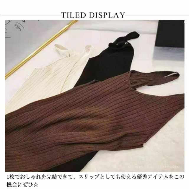 ニット キャミワンピース スリップ 送料無料 リブニットワンピース ロングワンピース キャミワンピ リブ キャミソールワンピース ニットワンピース 夏 Vネック ニットワンピ 春 無地 秋 冬 シンプル ワンピース