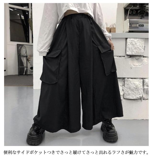 レディース ポケット付き サルエルパンツ 袴パンツ メンズ カーゴパンツ 大きいサイズ スカートパンツ 薄手 スカンツ ビッグ ゆったり モード ロング丈 ルーズ ユニセックス 体型カバー ワイドパンツ