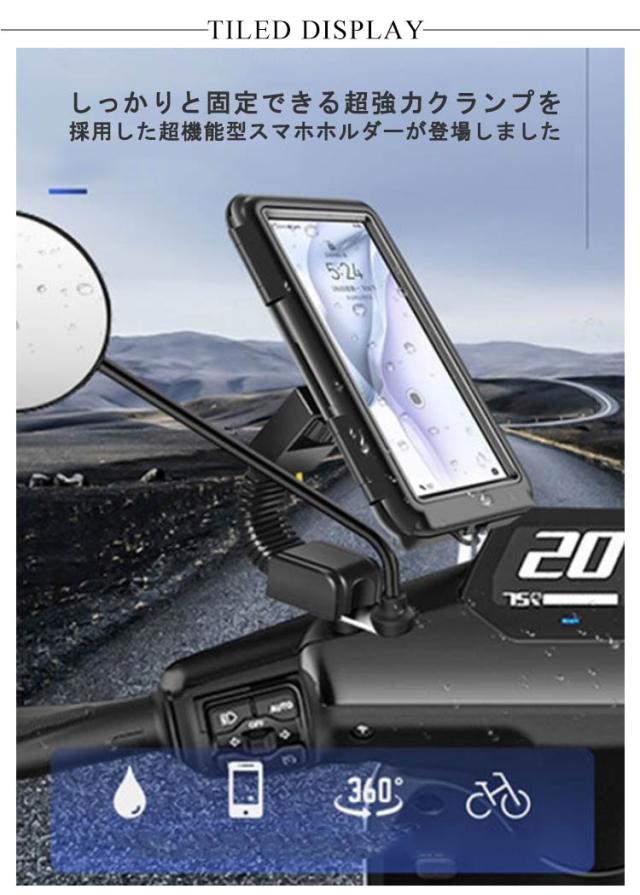 防水 自転車 回転 バイク イヤホン 片手操作 スタンド タッチ操作可能 防水ケース スクーター スマホホルダー 雨天 クランプ 強力固定 防塵 各種対応 クッション 充電 スマートフォンホルダー マウント アイフォン エクスペリア 横 落下防止 送料無料