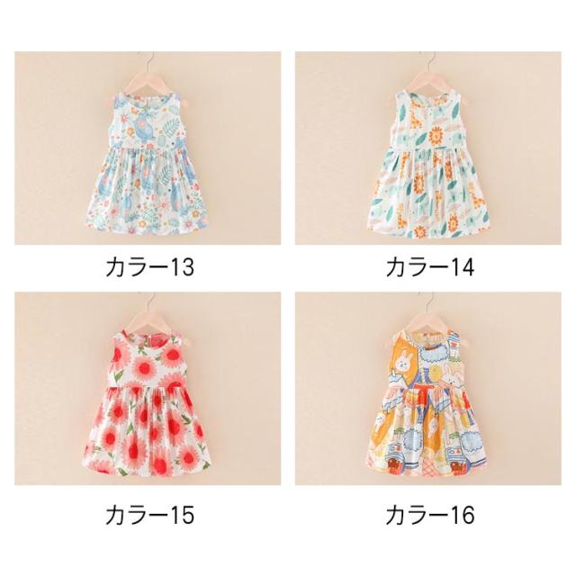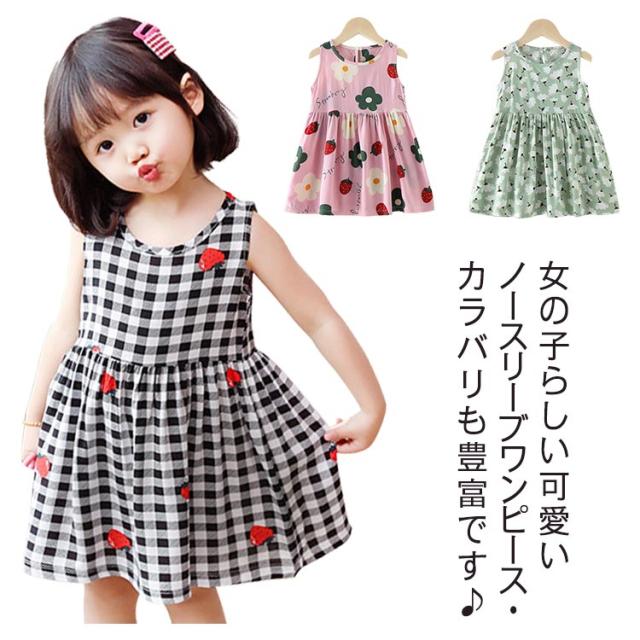 フレアワンピース ノースリーブワンピース キッズ 子供服 カジュアル かわいい 女の子 ジュニア 夏服 150cm 花柄 子ども服 女児 ベビー こども服 送料無料 おしゃれ タンクワンピース 90 100 110 120 130 140 ガールズ