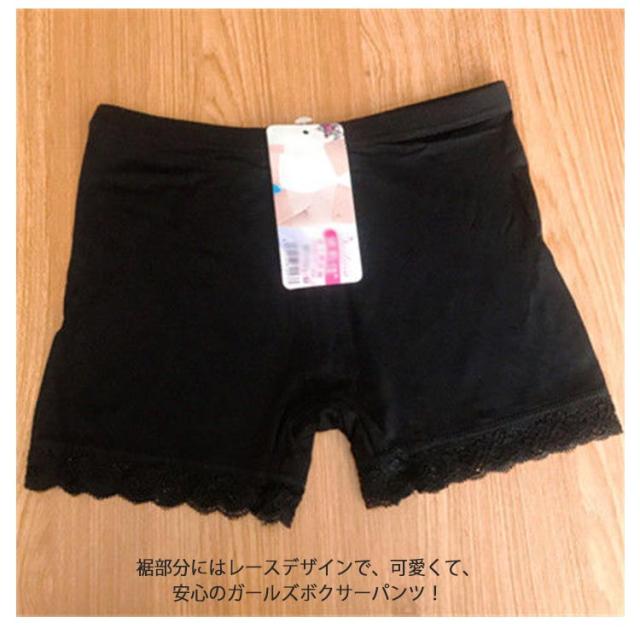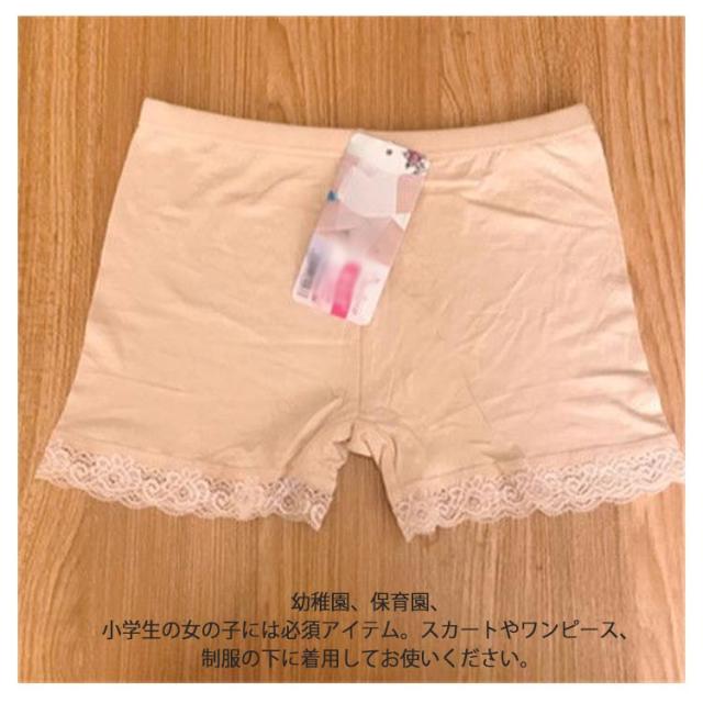 | 子供用のスカートの下に履くパンツです。 裾部分にはレースデザインで、可愛くて、安心のガールズボクサーパンツ! 幼稚園、保育園、小学生の女の子には必須アイテム。スカートやワンピース、制服の下に着用してお使いください。 | |