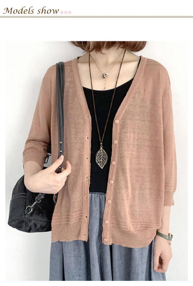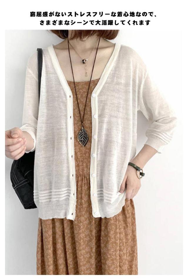 UVカット レディース 冷房対策 カーディガン 初秋 トップス 透け感 コーディガン 薄手 ママコーデ ゆったり アウトドア 7分袖 軽量 レジャー 羽織り 紫外線対策 ゆったり サマーニット