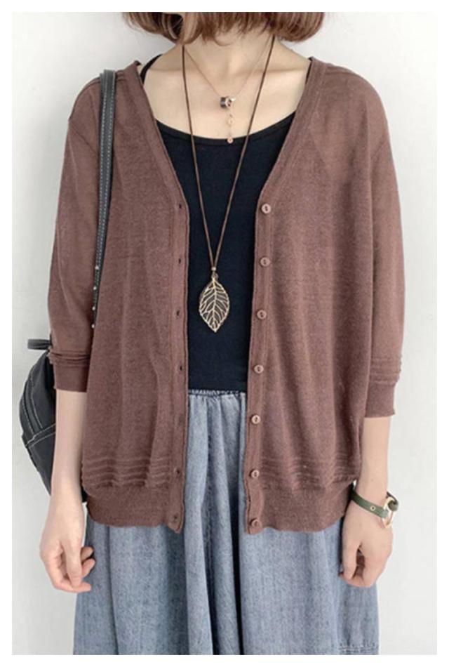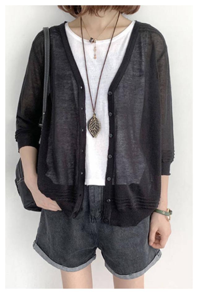 | お手軽上品な大人可愛いコーデが完成する薄手のカーディガン♪ ほんのり透け感があり、通気性が高く、暑い日でも心地よく過ごせます。 シンプルなVネックデザインで顔周りをスッキリ綺麗に魅せてくれます。 窮屈感がないストレスフリーな着心地なので、さまざまなシーンで大活躍してくれます。 持ち運びにも便利で、冷房対策の羽織としてや旅行のお供として役立つこと間違いなし! | |