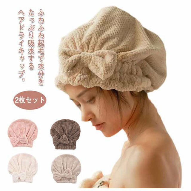 リボン ヘアケア 超吸水 ロングヘア お風呂上がり かわいい 速乾 タオルキャップ ふわふわ マイクロファイバー 【送料無料】ヘアタオル 対応 ヘアドライタオル レディース 大人 キッズ 柔らかい 時短 洗顔 湿気対策 2枚セット