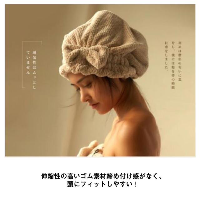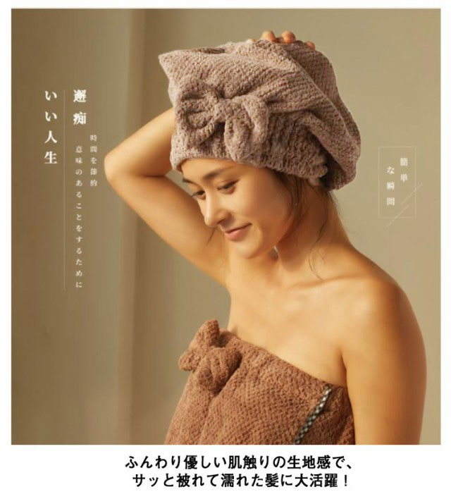 | ふわふわ起毛で水分をたっぷり吸水するヘアドライキャップ。 タオルドライ&ドライヤーの時間短縮ができます。 ふんわり優しい肌触りの生地感で、サッと被れて濡れた髪に大活躍! 伸縮性の高いゴム素材締め付け感がなく、頭にフィットしやすい! 簡単に手入れや洗濯もできて繰り返し使える | |